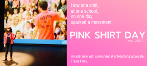 How one shirt, at one school, on one day, sparked a movement. An interview with Pink Shirt Day co-founder & anti-bullying advocate, Travis Price